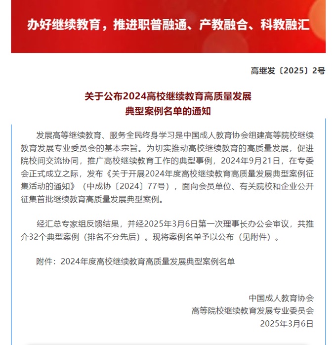喜讯:学校案例入选2024高校继续教育高质量发展典型案例