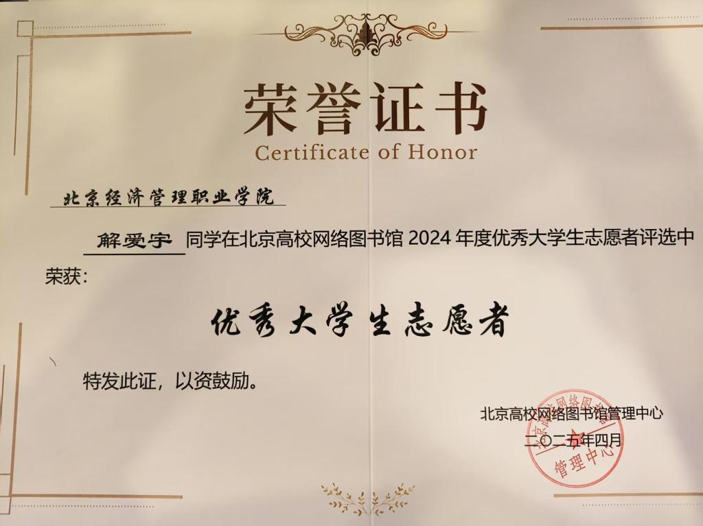 bat365在线平台学生被授予北京高校网络图书馆优秀大学生愿者和管理员称号