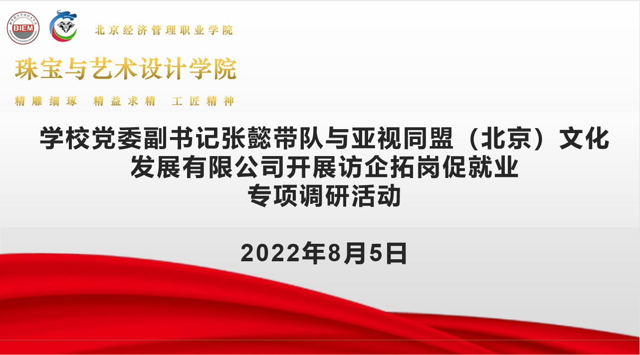 近日,学院党委副书记张懿带队同亚视同盟(北京)文化发展有限公司开展访企拓岗专项…