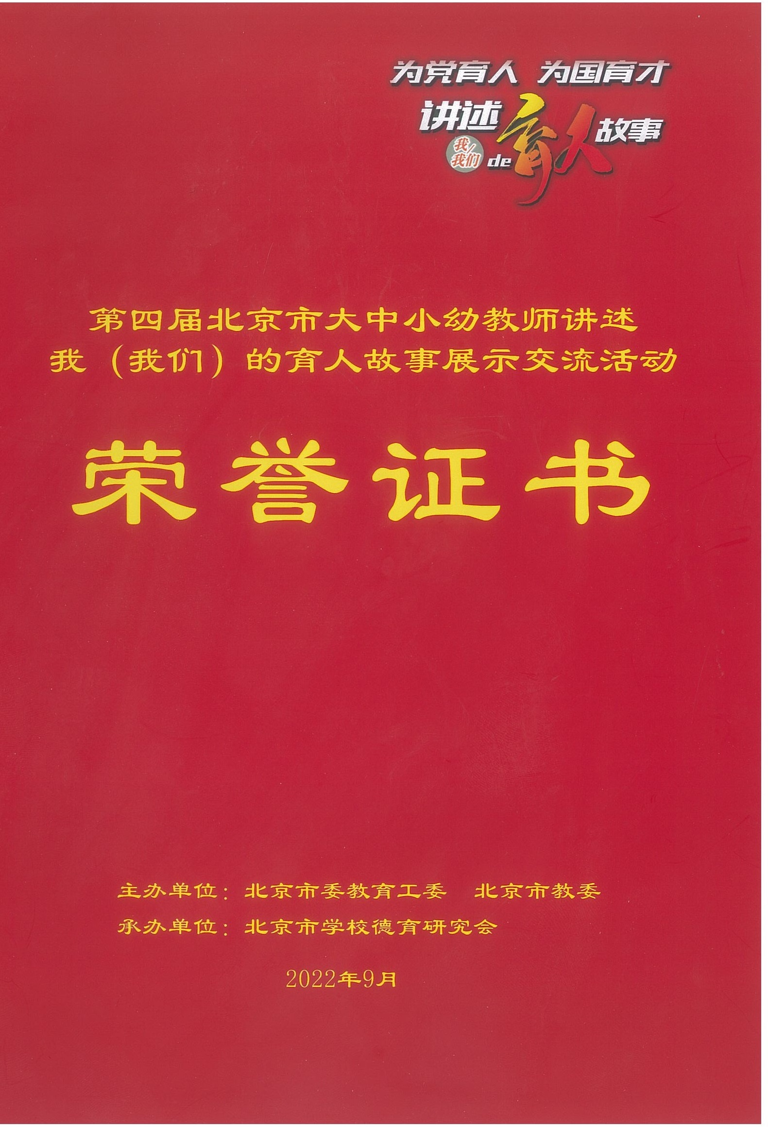 在第38个教师节前夕,9月3日,由北京市委教育工委、市教委主办,市学校德育研究会承…