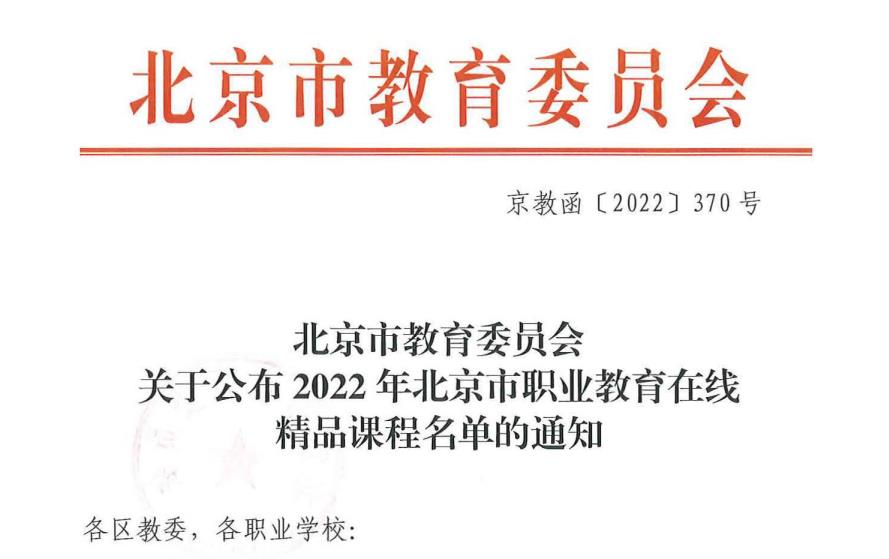 根据《北京市教育委员会关于开展2022年北京市职业教育在线精品课程遴选建设工作的通…