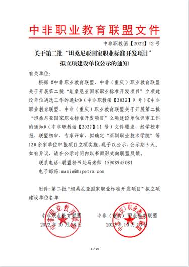 近日,中非职业教育联盟、中非(重庆)职业教育联盟发布了关于第二批“坦桑尼亚国家…