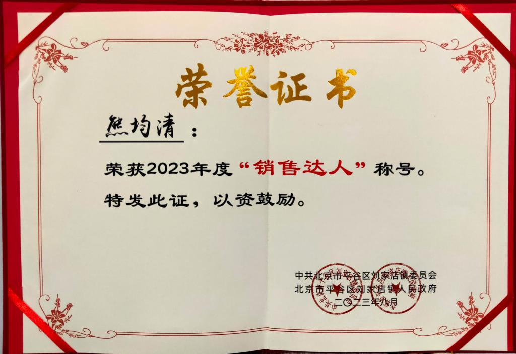 学校派驻第一书记获得2023年度“销售达人”称号