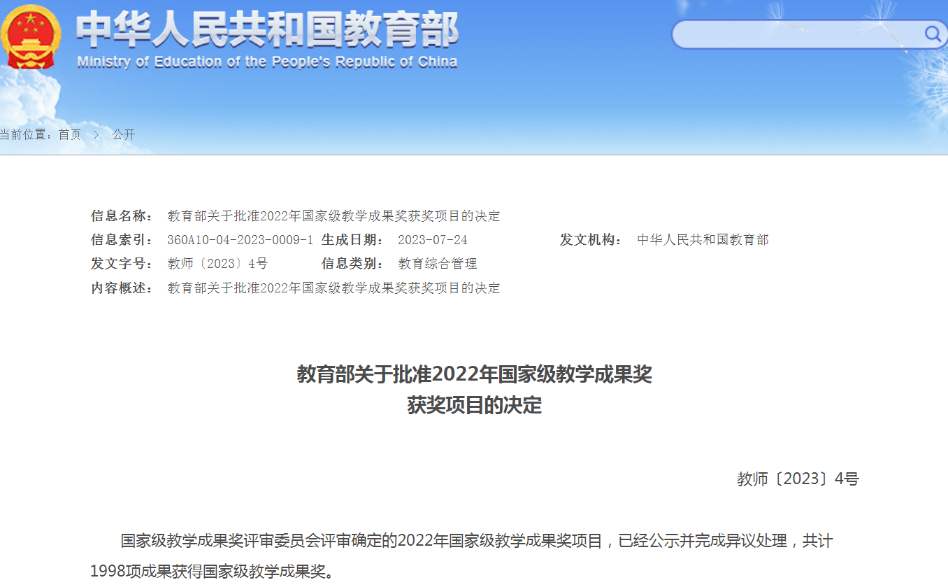 近日,教育部公布了《教育部关于批准2022年国家级教学成果奖获奖项目的决定》,职业…