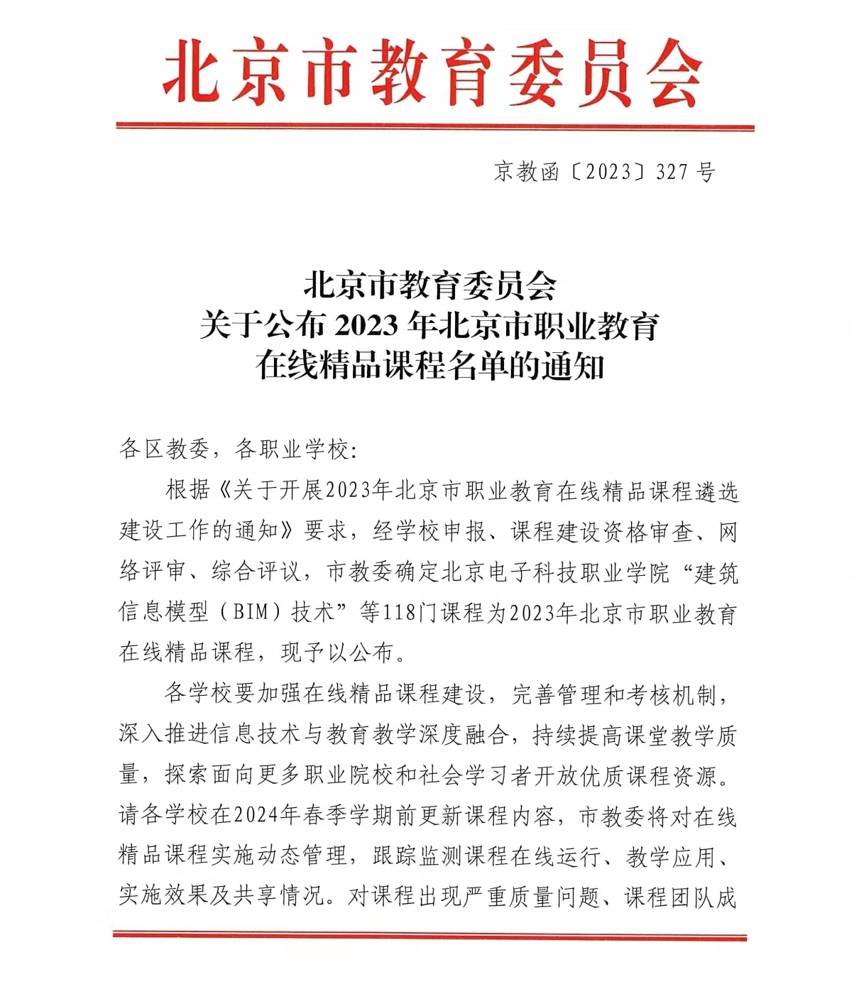 喜报!bat365在线平台6门课程顺利入选2023年北京市职业教育在线精品课程