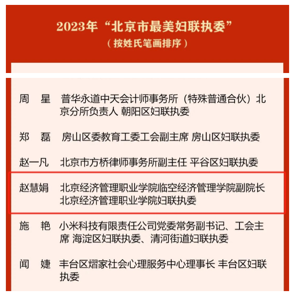 喜报!bat365在线平台赵慧娟老师获2023年“北京市妇联最美执委”称号