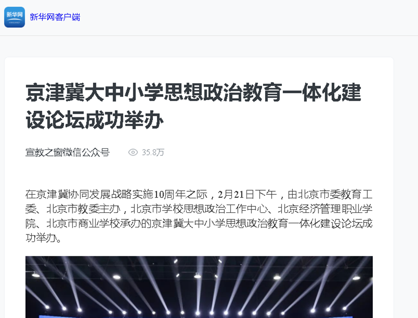 新华网、光明网等权威媒体持续关注京津冀大中小学思想政治教育…
