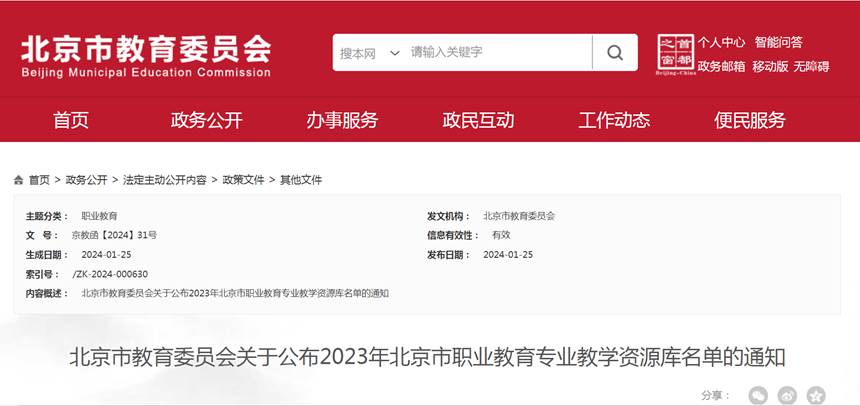 日前,北京市教育委员会公布了2023年北京市职业教育专业教学资源库名单,bat365在线平台2个专…