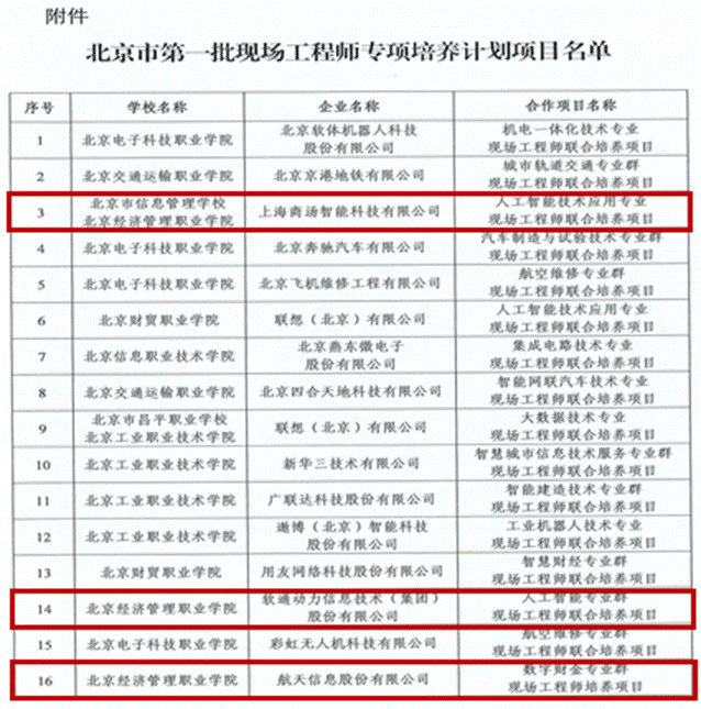 根据北京市教育委员会公布的《关于公布北京市第一批现场工程师专项培养计划项目名…