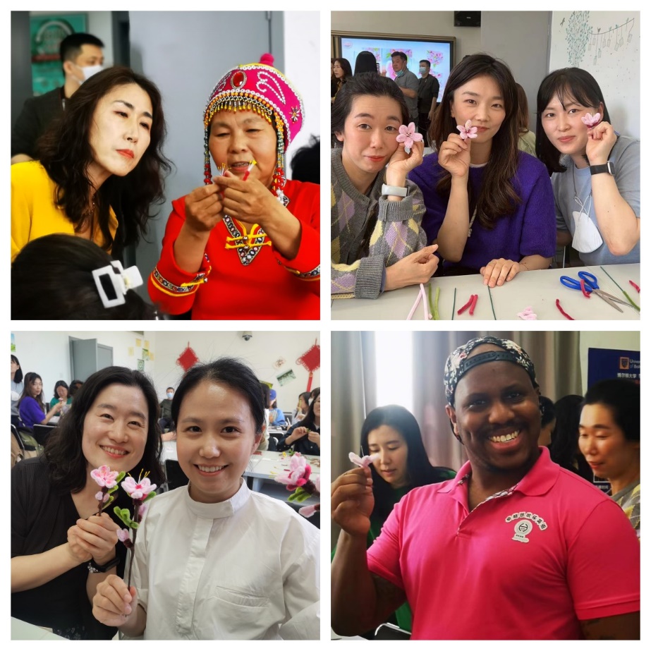 在非遗蒙绣第六代传承人、为北京冬奥会制作手捧花的吴晓英老师的带领下,各国学生用一种古老的东方传统工艺——绒花,留住2023年的一抹春色。吴老师先给同学们讲解了非遗绒花的制作过程。随后,大家亲手体验制作。从花瓣到绿叶,再到枝条,一朵朵粉嫩的桃花在大家手中次第绽放。活动结束后同学们意犹未尽,学好汉语,读懂中国,发现更多精彩的愿望越发强烈。