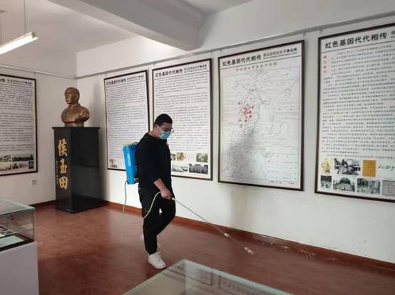 田子达同学进行场馆消毒工作