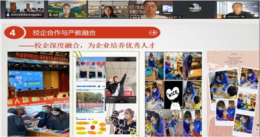 会上,外语与学前教育学院党总支书记赵明勇、院长王月会也分别对朝花幼儿园一直以来深度参与学院专业建设和学生工作表示感谢。应用英语(幼儿双语)教研室主任闫晗老师从人才培养模式、专业课程体系、校企共建内容、实习实训、校园招聘等方面进行了全面介绍,表达了专业与企业之间合作的重要性。朝花幼儿园从建园历史、办园特色、实习生与新教师的培训体系等方面详细进行了介绍,并明确表示企业今后会持续有用人需求,希望双方加强合作,进一步拓宽用人渠道。