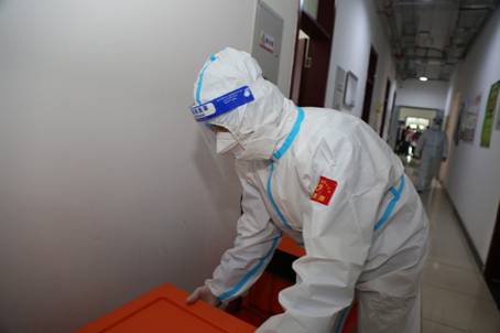 校医第一时间赶到宿舍,向阳性学生说明情况,指导其进行卫生消毒,规范佩戴N95口罩。