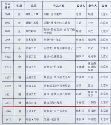中国工艺美术“百花杯”评选中荣获银奖