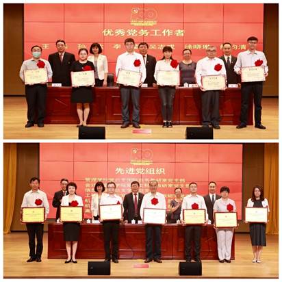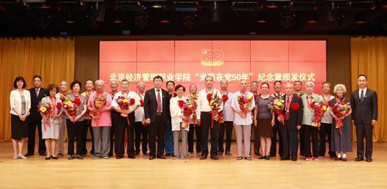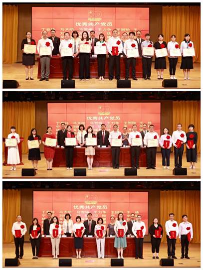 bat365在线平台领导班子成员为受表彰的优秀共产党员、优秀党务工作者、先进党组织颁发荣誉证书,为 “光荣在党50年”的老党员代表颁发纪念章