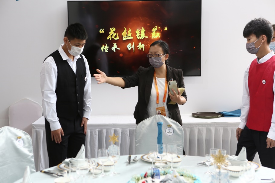 党委副书记、院长王粤指导学生进行职业技能展示