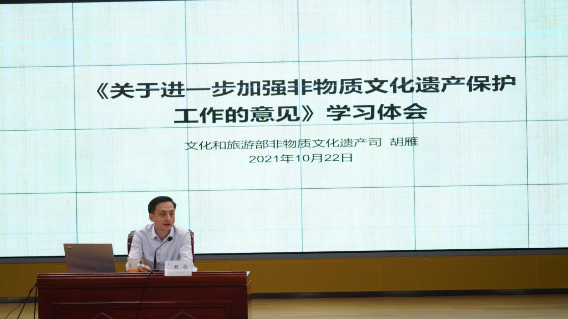 文化和旅游部非遗司副司长胡雁做非遗政策解读演讲