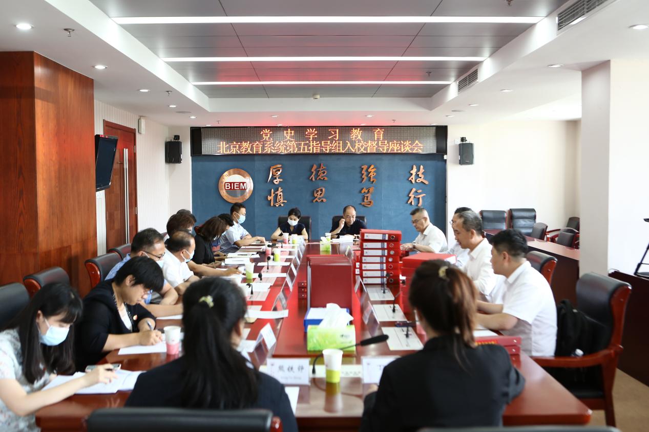 2021年7月5日,党史学习教育北京教育系统第五指导组组长郑文堂一行莅临bat365在线平台督查指导相关工作,通过听取汇报、审阅材料、师生座谈会、实地走访的方式,全面考查bat365在线平台党史学习教育工作进展情况。学校党史学习教育工作领导小组、办公室全体成员出席汇报会议。汇报由学校党史学习教育领导小组副组长,党委副书记、院长王粤主持。