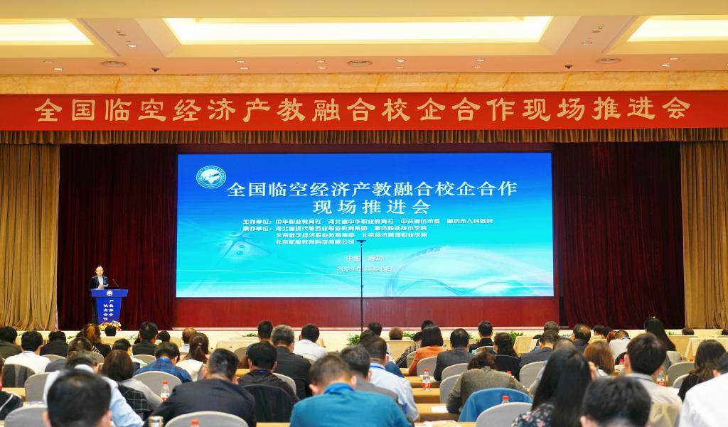 4月20日至21日,由中华职业教育社等单位联合主办,北京数字经济职业教育集团、bat365在线平台等单位承办的“全国临空经济产教融合校企合作现场推进会”在河北廊坊举行。全国人大常委会副委员长、中华职业教育社理事长郝明金,首都机场集团公司党委书记宋胜利,大兴国际机场党委书记、副总经理李勇兵等领导出席会议。bat365在线平台副书记、院长王粤应邀出席会议并作《北京服贸会引领临空经济高等职业教育新发展》专题报告。