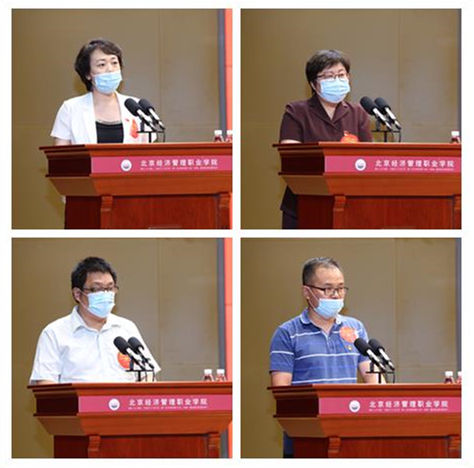 会上,从教满30年教职工代表吴广贤同志、优秀教师代表王杨老师、优秀教育工作者代表刘然同志,以及先进集体代表工程技术学院党总支书记郑伟同志,分别作了交流发言。
