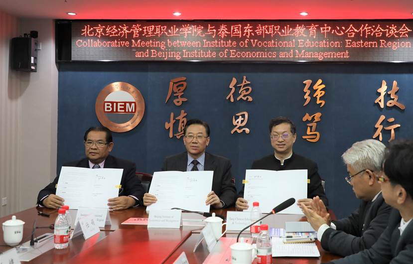 张连城、泰国东部职教中心主任颂猜·探隆素分别代表双方致辞,姚光业代表学校与泰国职教中心、唐风国际教育集团签署了合作备忘录。三方将在海外分校建设、学历教育、专业建设、互访交流等方面开展深入的合作,共同培养通晓汉语、了解中国国情与文化、能够服务中泰重大工程项目的的高素质复合型技术技能人才。