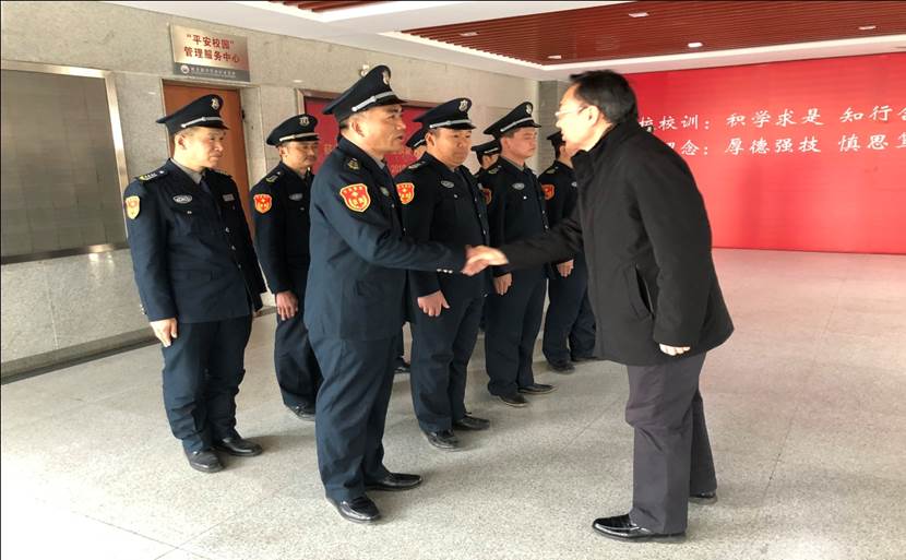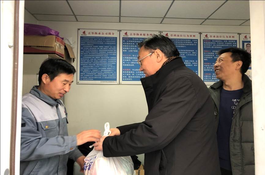 姚光业分别到望京校区监控室、保安队、门卫岗、热交换中心、物业中心、保洁、学苑酒店、学生公寓、职工食堂和固安校区总监控室、派出所、学生公寓、校医院、动力中心、车队等慰问春节期间坚守岗位的教职工,并为他们送上学校工会精心准备的食品慰问品。