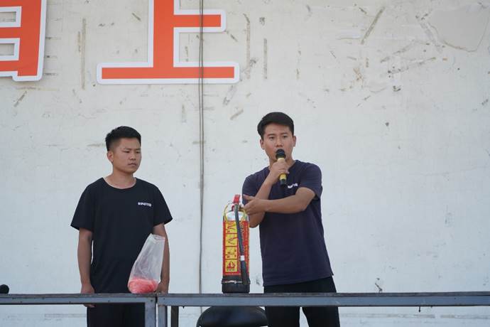 讲师针对掌握消防灭火器材的使用方法和正确逃生姿势等消防安全知识等进行现场讲解,并亲自示范。现场设有3个灭火器使用实操体验馆和1个火灾逃生体验馆。同学们在烈日炎炎下认真听讲、学习,井然有序的排队进入实操体验馆进行模拟演练。