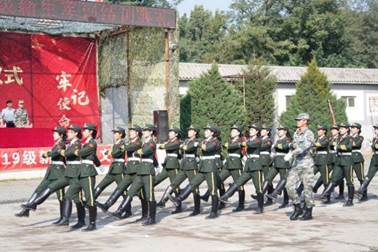 张连城宣布汇报表演开始。在雄壮的国歌声中,学校国旗仪仗队将五星红旗冉冉升起。在随后进行的分列式环节中,全体参训学生身姿挺拔、精神抖擞,以最饱满的精神风貌迎接检阅。同学们英姿飒爽,动作整齐划一,用铿锵有力的步伐和响亮的口号,在汇报表演中将军人的风貌展现的淋漓尽致。在军训成果汇报表演中,男生的擒敌拳,女生的“三声三相”汇报表演,男生的“三防”表演,赢得了现场师生的阵阵热烈掌声。领导们肯定的眼神,更是对所有新生们的嘉奖,为14天军训的辛苦付出画上了圆满句号。