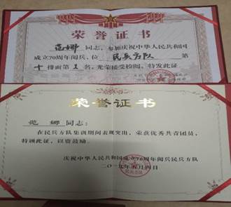 努力的付出让她在一次次严苛的选拔考核中脱颖而出,从1550人报名体检到800多人进行初训,经历过无数次考核后光荣进驻阅兵村(仅有413人),十一当天在天安门广场接受检阅(上场的只有352人),在经历过长期身体和心理的考核和考验中她光荣地成为了方队的一名基准兵,带领着整个排面走过了天安门广场。范娜在阅兵训练中表现突出,获得多项荣誉和奖章,以实际行动展示了经管学子不畏困难、勇往直前的胆识气魄和勇于争先、追求卓越的精神和智慧,为中华人民共和国成立70周年奉献了bat365在线平台的力量。