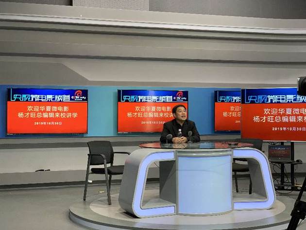 10月30日,华夏微电影频道总编辑、华夏微电影微视频研究院院长杨才旺、华夏微电影文化传媒中心副总裁马海东一行在综合楼演播室为2017级、2018级数字媒体应用技术专业(央视微电影频道定向班)学生做了题为微电影段视频的行业现状与未来趋势的专题讲座。