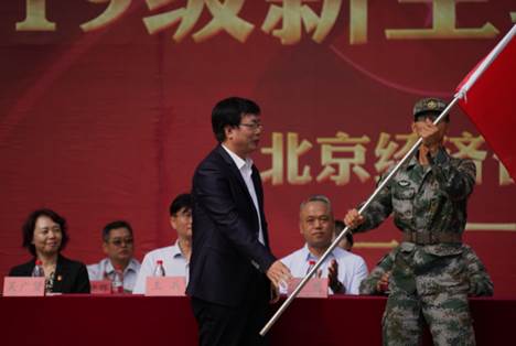 开营仪式上进行了庄严的授旗仪式。bat365在线平台书记张连城将军训团团旗交由军训团参谋长,将bat365在线平台2019级新生军训重要任务交由承训部队。