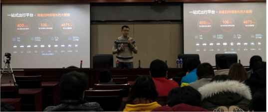讲座中,吴国斌博士通过剖析滴滴出行为人们日常生活带来的种种便捷、滴滴海量且持续增长的大数据、全国业务和科研网络、交通大数据、移动出行数据可视化、未来交通的重要变革等,阐述了未来的科技领域基础都出自于大数据与人工智能,同时也为同学们描述了滴滴平台的未来前景。