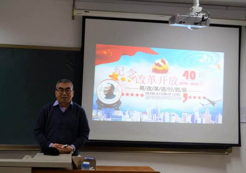 孙达老师从“一个伟大精神”、“两个评价”、“三个伟大飞跃”、“四个基于”、“七个方面”、“三个充分证明和两个关键”、“九大启示”、“九条宝贵经验”、“十个始终”等将改革四十周年的风雨历程和卓越成就进行“数”说。他从中国改革开放取得的巨大成功到世界一些国家改革失败,从居民收入到国民生产总值,从世界局部动荡到中国人民安居乐业,通过一系列的事实比较,讲述了40年改革开放的风雨历程和巨大成就。同学们认真听讲,专心做笔记。