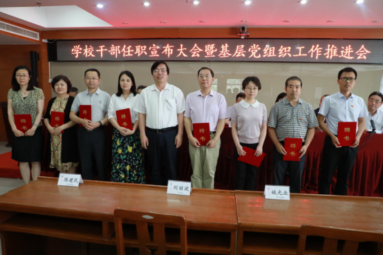 会上,副院长、党委组织部(统战部)部长魏中龙同志集中宣布了近期调整岗位、提拔任职的处级干部名单,党委书记张连城同志为9名新提任处级干部颁发任职聘书。魏中龙同志部署了基层党组织换届工作并就党支部规范化建设工作做了安排,全面启动了bat365在线平台党支部规范化建设。