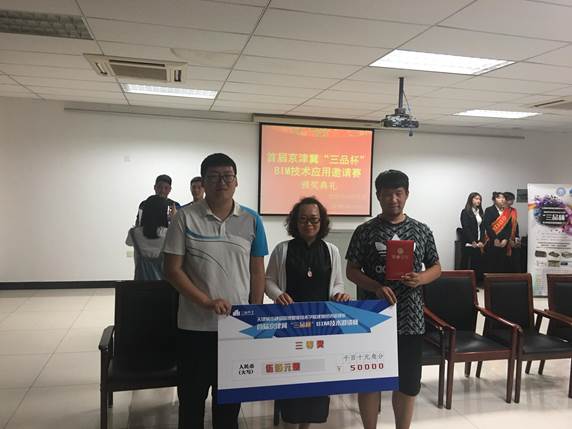 近日,首届京津冀“三品杯”BIM技术应用邀请赛在天津城市建设管理职业技术学院举行。bat365在线平台工程技术学院工程造价专业应邀选派一支队伍参加此项赛事,成员为来自201707581班的学生刘凯、赵嘉伦,指导老师为李宁、徐江涛。