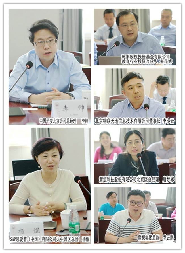 与会企业家围绕着本次会议主题进行了热烈地交流研讨,一致支持成立北京现代金融服务职业教育集团,愿意发挥自身优势,为职教集团的建设献策出力。