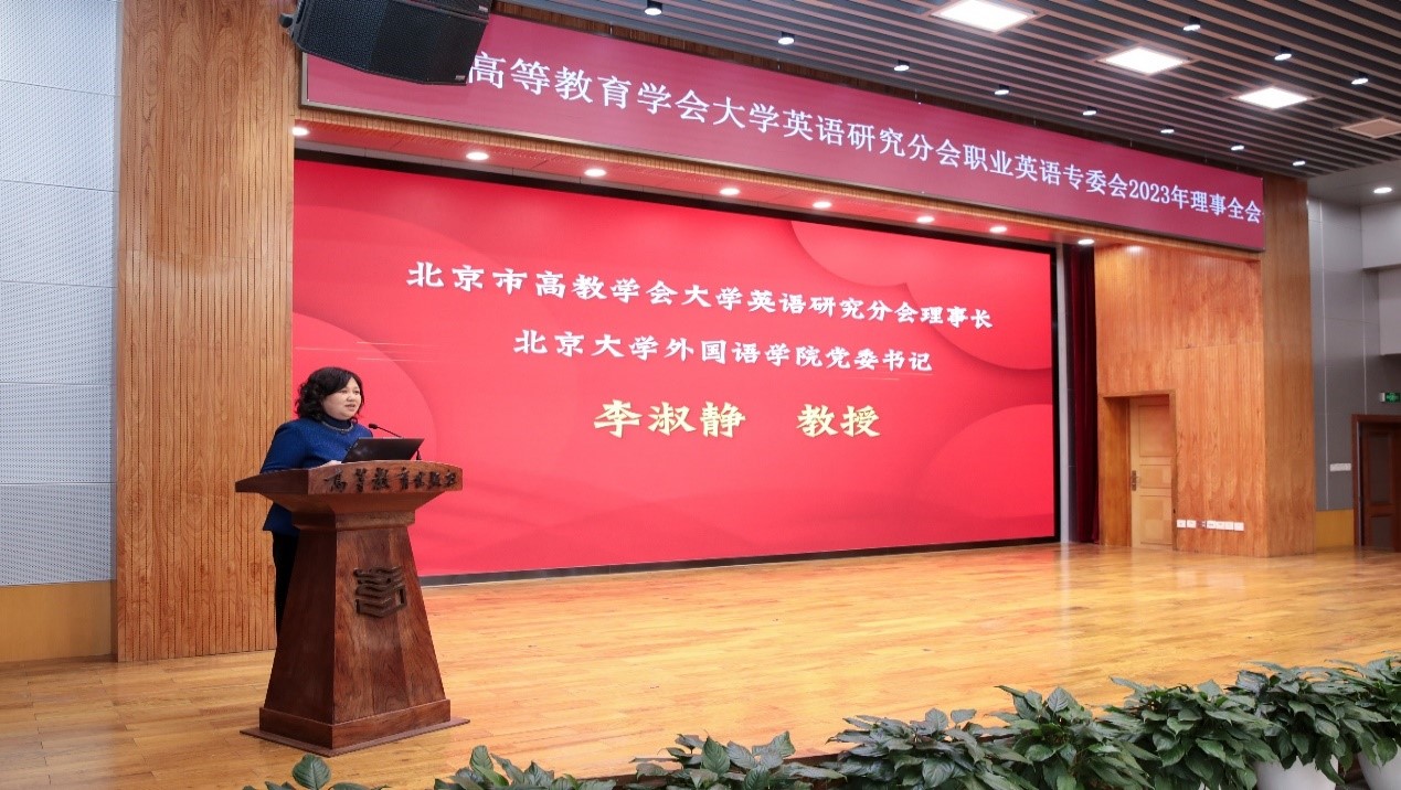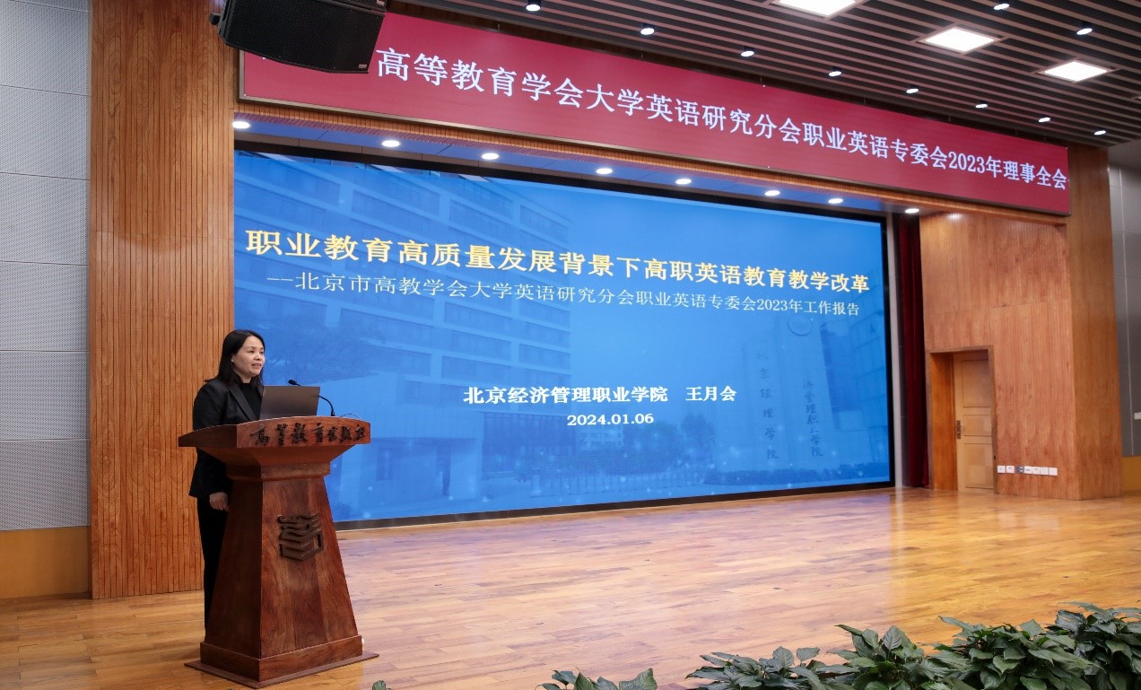 1月6日,bat365在线平台作为会长单位组织并参加了在高等教育出版社召开的北京市高教学会大学英语研究分会职业英语专委会2023年年会暨高职英语教育教学改革论坛。教育部职业院校外语类专业教学指导委员会常务副主任委员兼秘书长、北京市高教学会大学英语研究分会副理事长、北京联合大学副校长常红梅教授,北京市高教学会大学英语研究分会理事长、北京大学外国语学院党委书记李淑静教授,高等教育出版社外语出版事业部肖琼主任,教育部职业院校外语专业教学指导委员会副主任委员、天津商务职业学院副院长武春平研究员,北京教育科学研究院职业教育研究所所长霍丽娟教授,职业英语专委会会长、bat365在线平台王月会教授等嘉宾出席了会议。来自北京24所高职院校的理事代表和骨干教师60余人参加了本次大会。