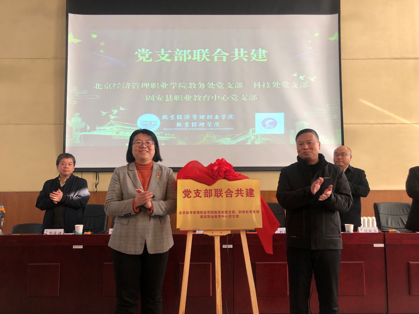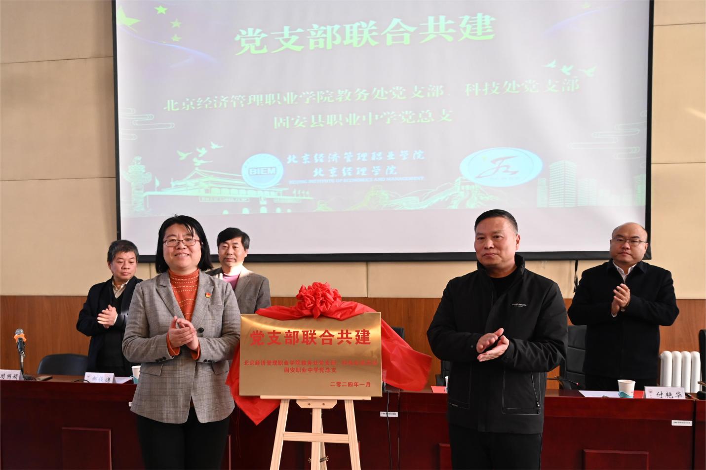 周丽和刘亚平为固安职业教育中心支部共建揭牌
