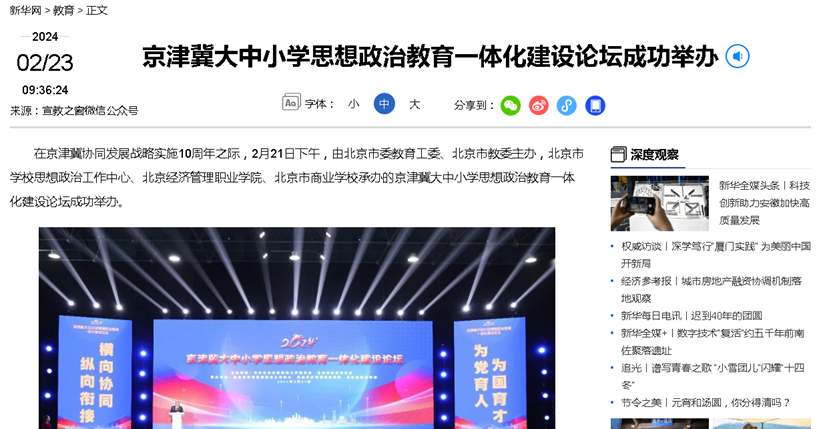 新华网报道京津冀大中小学思想政治教育一体化建设论坛