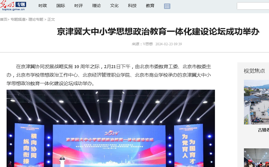 光明网报道京津冀大中小学思想政治教育一体化建设论坛