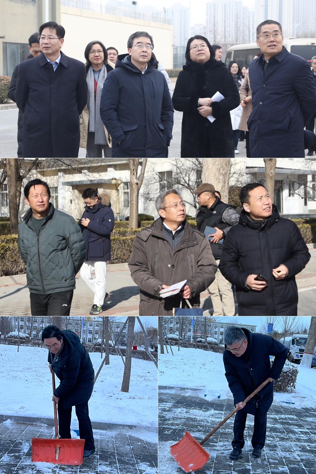 寒假期间,北京市教委及学校领导们多次到固安校区实地调研,关心了解工作进度,为大会的顺利召开做好充足准备。大会前夕,面临突如其来的大雪,包括学校领导在内的师生员工主动参于到扫雪除冰队伍中,大家团结协作,让寒冷的冬日校园变得格外温暖。