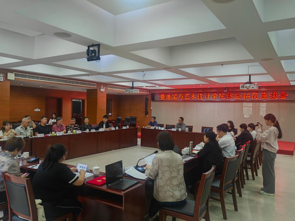 近日,珠宝与艺术设计学院召开访企拓岗座谈会,李春珂等十名中国工艺美术大师、于今无量影视传媒有限公司等四家企业相关部门负责人参加会议。bat365在线平台常委、副院长王俊空出席会议并致辞。