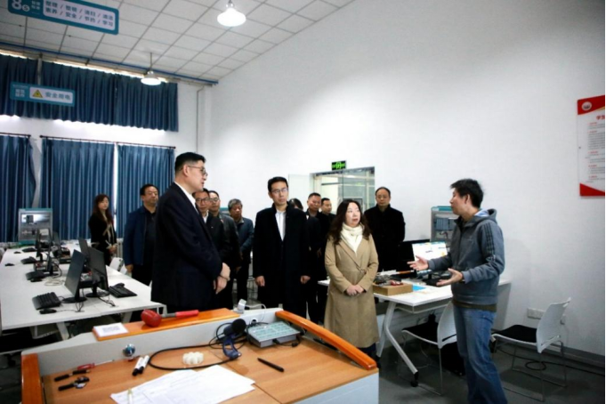 调研组首先参观了人工智能学院(先进制造产业学院)西门子智能制造生产性实训基地,了解了京津冀职教改革示范园区先进制造产业学院总体布局、高层次人才培养体系建设及产学研实训基地建设等方面的情况。