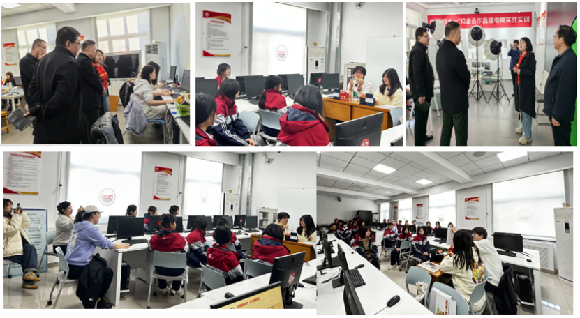 活动中,临空经济管理学院跨境电商、电商专业师生进行了跨境电商技能展示、电商直播和优秀项目策划实战演练,并参观了电商实训室和直播基地。