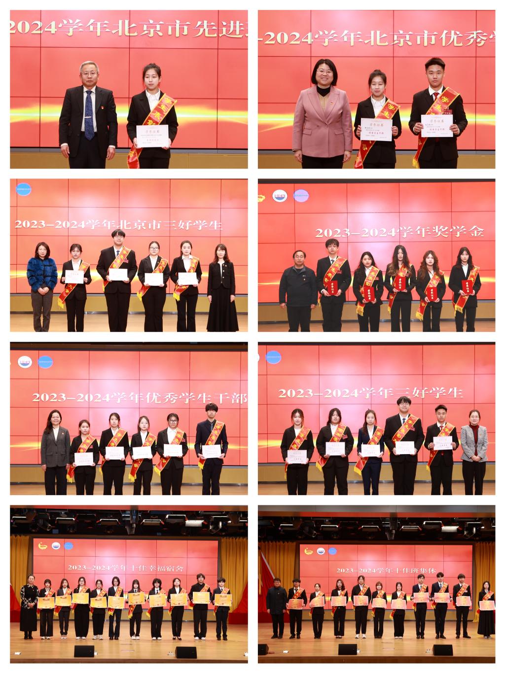 周丽宣读《关于表彰2023-2024学年学校先进集体和个人的决定》,与会校领导、各学院学生工作负责人为获奖集体和个人代表颁发荣誉证书。