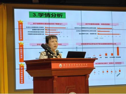 比赛现场,各团队围绕教学实施报告与教学片段展示两大环节展开激烈角逐。公共基础课程组注重思政元素与学科融合,如马克思主义学院“何以中国:非凡成就彰显实践伟力”“做崇德向善的时代新人”等作品,将思政教育融入形势与政策、思想道德与法治课程,通过案例教学、互动讨论提升学生职业素养;基础教育学院 “‘爱乒才会赢’乒乓球选项课”“突破急停投篮” 等体育课程,结合技能训练融入体育精神培育,体现“健康中国” 理念。
