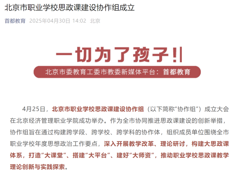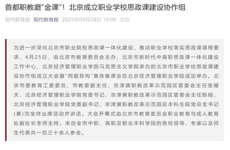 中国教育报-中国教育新闻网报道北京市职业学校思政课建设协作组成立