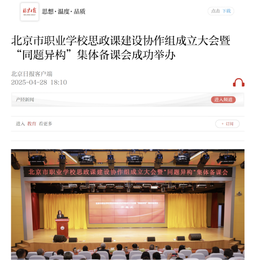 北京日报客户端报道北京市职业学校思政课建设协作组成立