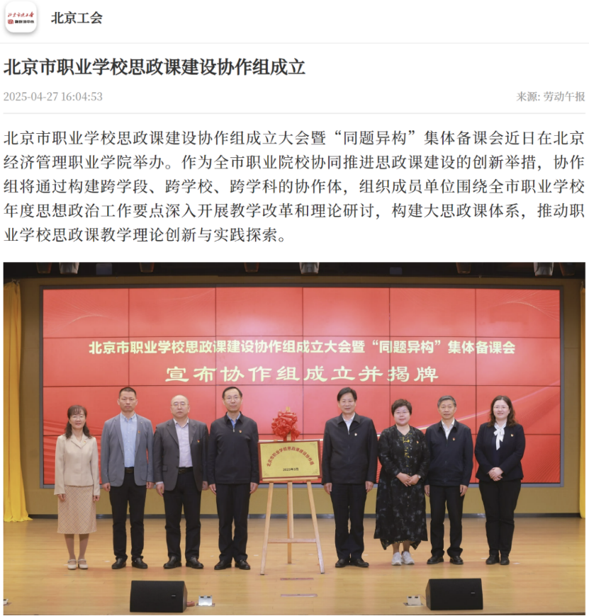 北京工会客户端-劳动午报报道北京市职业学校思政课建设协作组成立