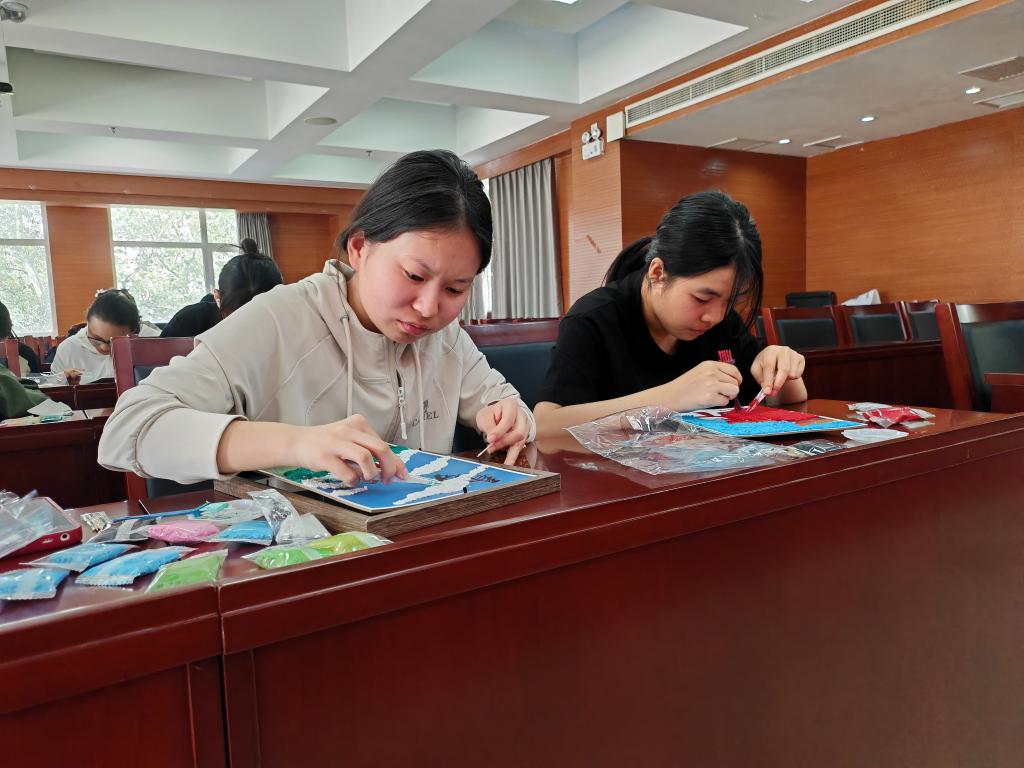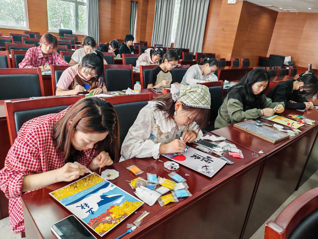 活动现场,纸浆画指导老师讲解了纸浆画的起源,并手持工具和材料向同学们进行了细致的制作讲解。制作过程中,同学们专注投入,将内心的想法与情感倾注于指尖,经过两个小时的精心制作,一幅幅精美的纸浆画作品逐渐成型。画面中,灵动的色彩、立体的质感,不仅展现了同学们的艺术才华,更承载着对传统文化的理解与热爱。
